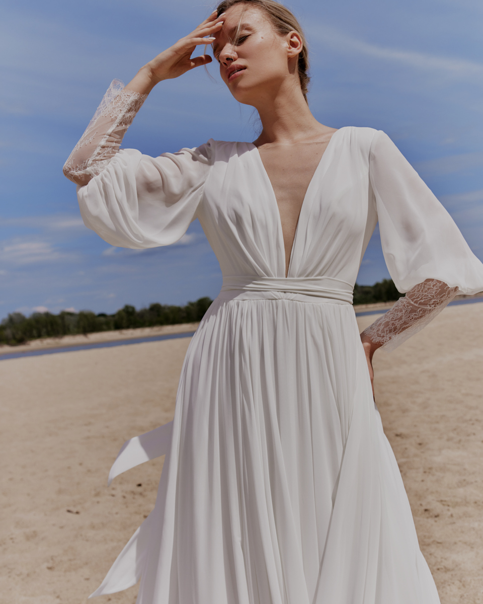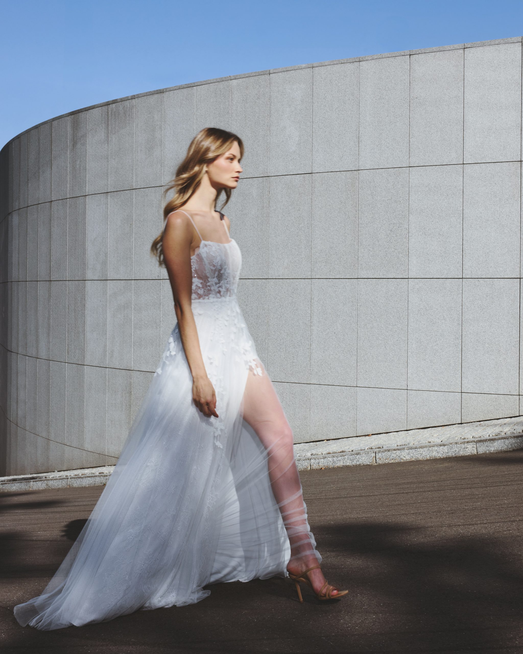 Die Amy Love 2023-Kollektion ist eine frische Interpretation der Moderne und der Romantik. In dieser neuen Kollektion hast Du die Freiheit, Deinen einzigartigen Stil durch leichten, luftigen Tüll, zarte Spitze, 3D-Applikationen, viele ausgefallene Akzente in Form von angesetzten Ärmeln, tief ausgeschnittenen Schulterträgern, gebundenen Tüllschleifen